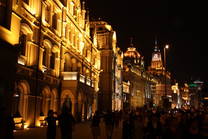 Nachts werden sowohl die 52 historischen Kolonialbauten wie auch die neuen Hochhäuser Pudongs in Licht getaucht. Ein Besuch des Bunds bei Nacht ist daher ein Muß genauso wie das Flanieren auf dem Bund bei Tag.