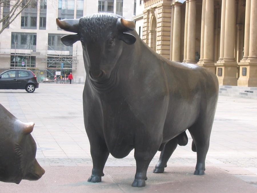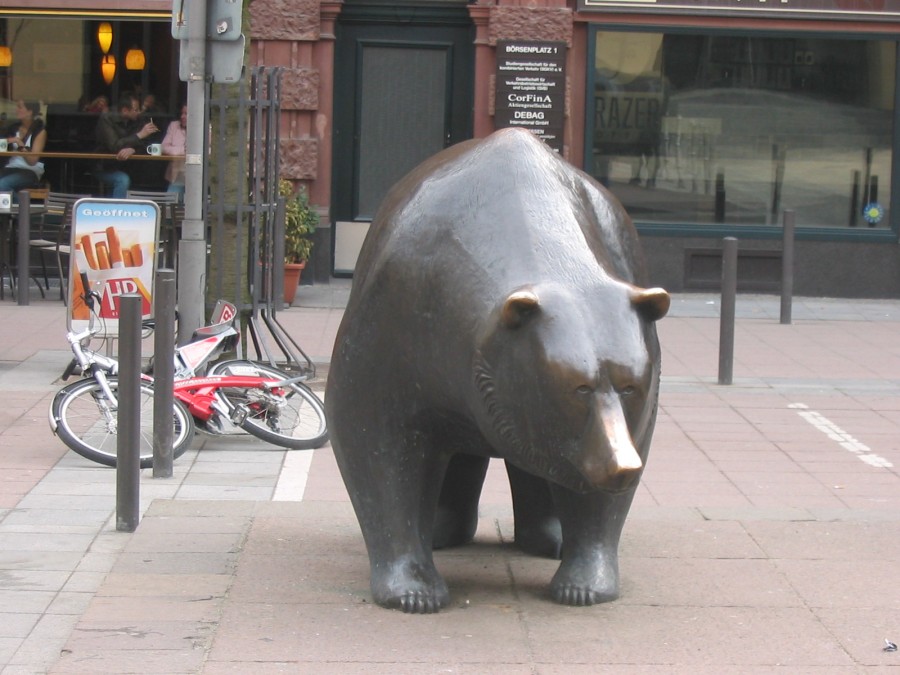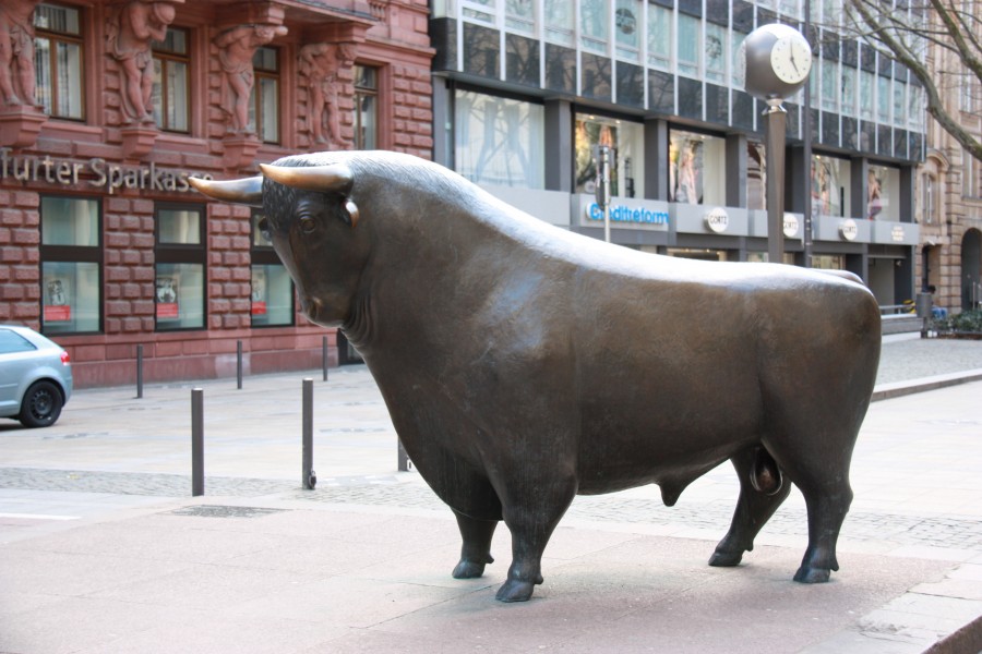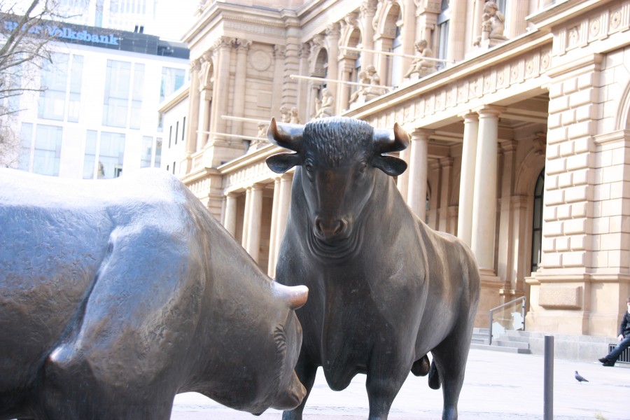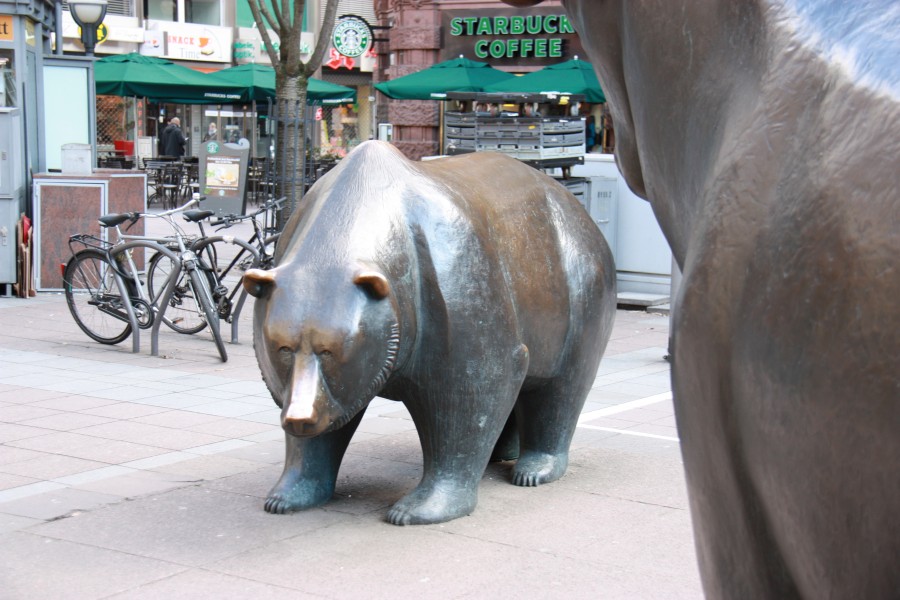 Im Stadtzentrum von Frankfurt befindet sich unweit der Hauptwache die Frankfurter Wertpapierbörse. Hinter einer schmuckvoll verzierten Fassade befindet sich am Börsenplatz das sogenannte Börsenparkett. Die bekannten Symbole Bulle & Bär stehen dabei direkt auf dem Platz vor der Börse. Während der Bär fallende Kurse symbolisiert gilt der Bulle als Symbol für steigende Kurse.