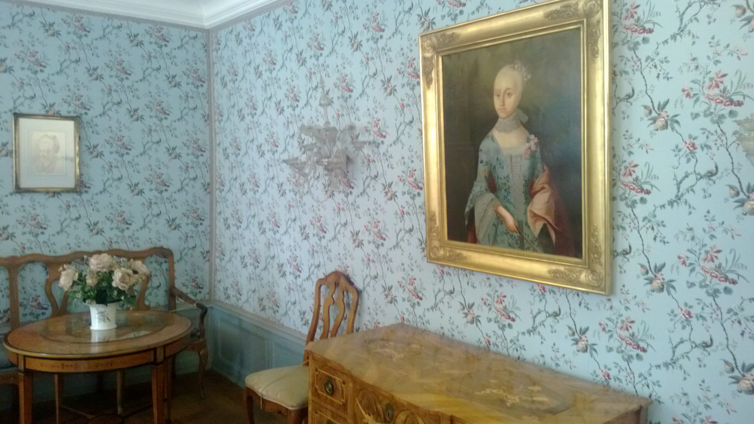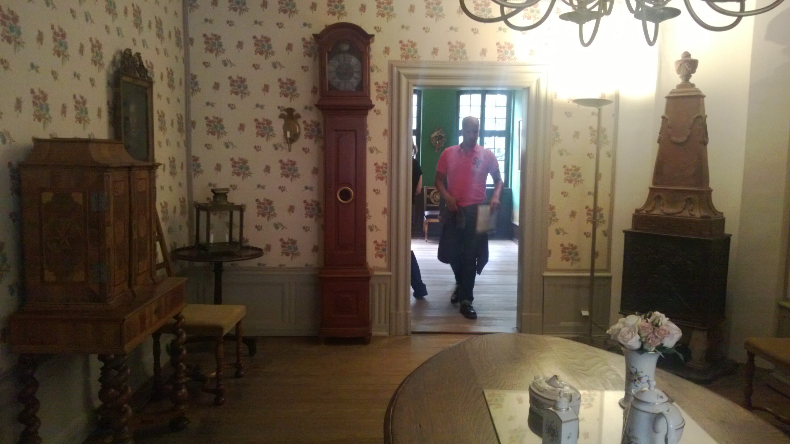 Das blau eingerichtete Zimmer im Erdgeschoß wurde als Speisezummer genutzt und ein weiteres gelb eingerichtetes Zimmer als Empfangszimmer. Ansonsten beeindruckt die Verzierung des Eingangsbereiches sowie der imposante Treppenaufgang.