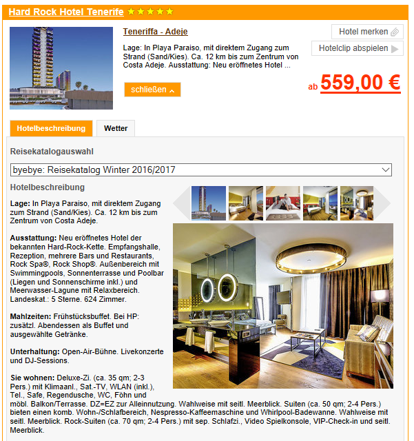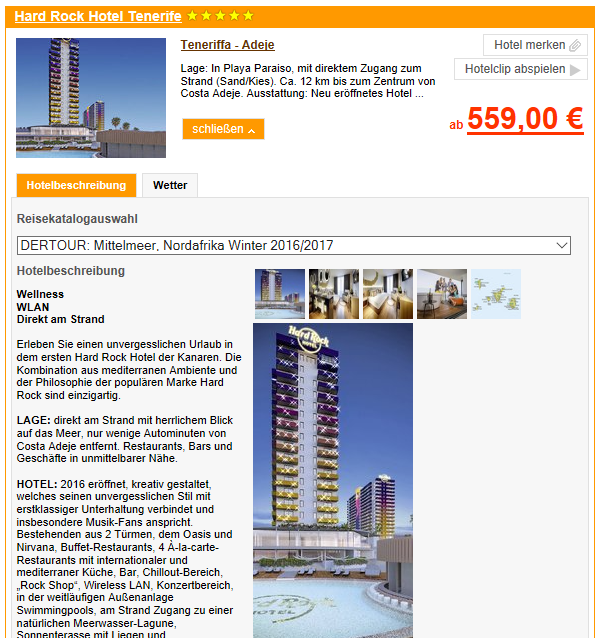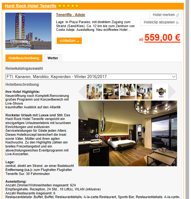 Sie möchten selbst Urlaub auf Teneriffa im Hard Rock Hotel Tenerife verbringen und die Sehenswürdigkieten der Insel sehen? Die Reisewebseite mit dem Spezialangebot für Teneriffa ist unter http://teneriffa.reisekiosk24.de zu erreichen. Wer den persönlichen Kontakt sucht, der erreicht das Team von Reisekiosk24.de unte 069/2032-8778 für eine persönliche Beratung oder Buchung.