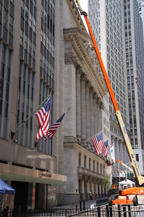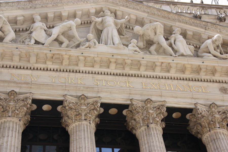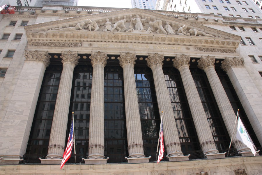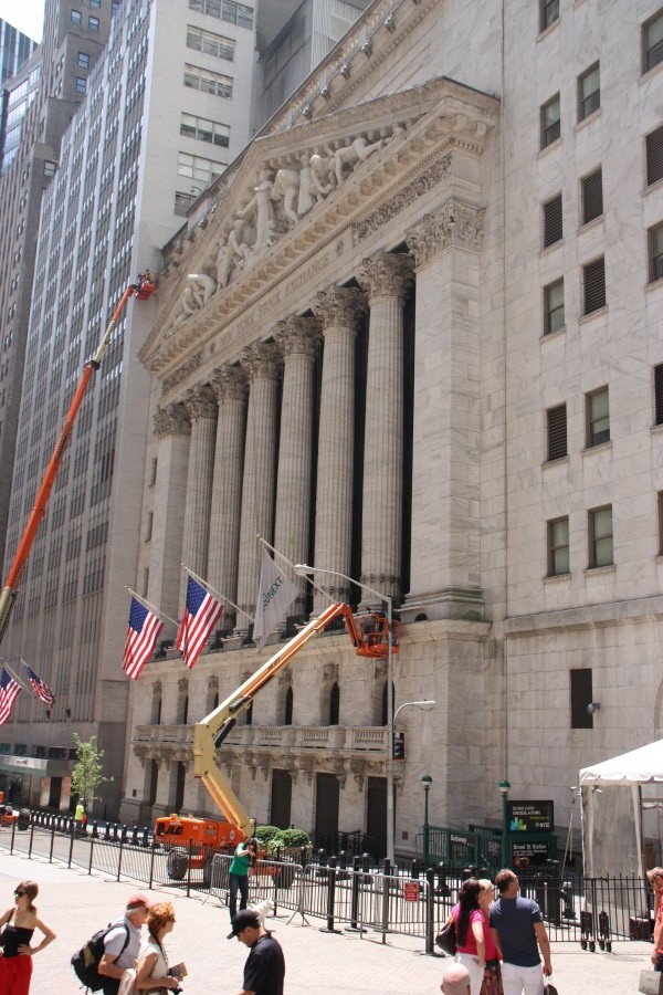 Die Fassade der New York Stock Exchange (NYSE) ist damit auch das beliebteste Fotomotiv in der Wall Street. Das im klassizistischen Stil erbaute Gebäude besteht aus einer Tempelfassade und einer darüber angebrachten Giebelskulptur.